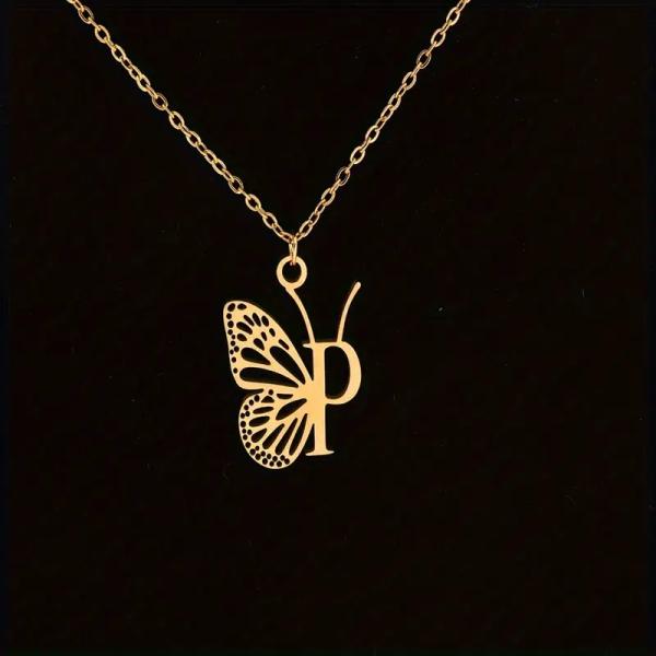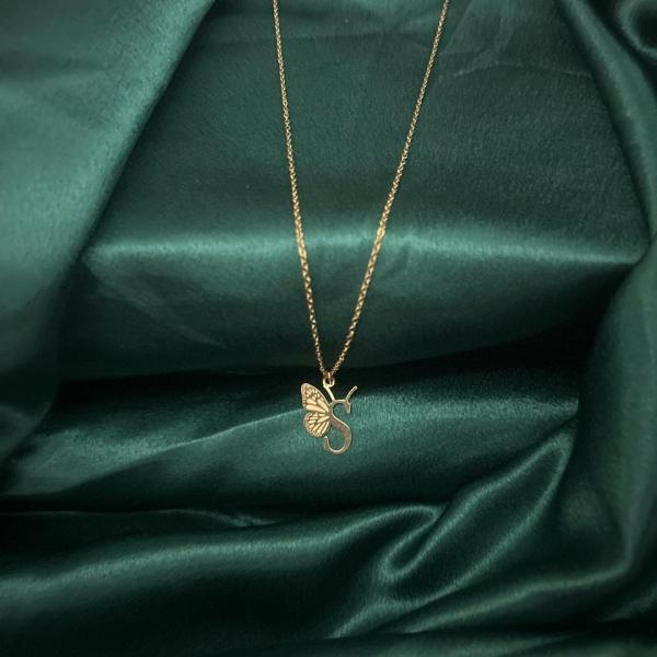 Premium Quality Gold Plated Butterfly Pattern Letter A Necklace personalized pendant chain.