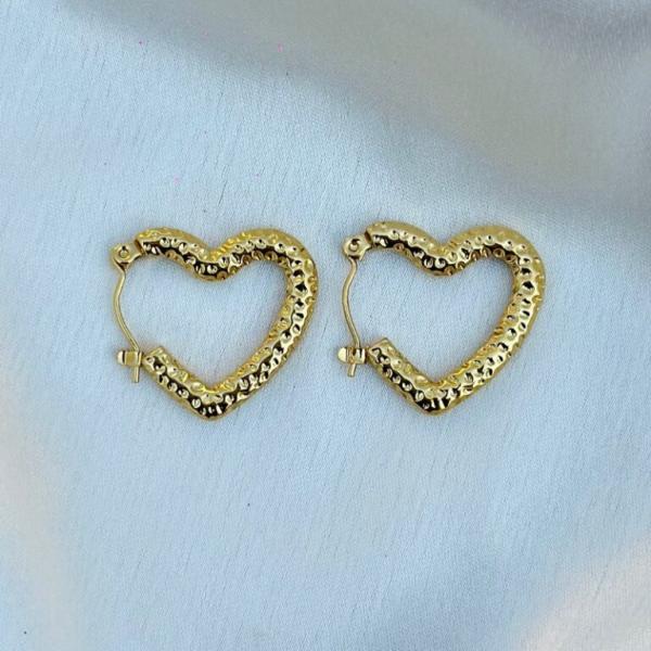 Chic heart-shaped hammered gold earrings featuring 18K Gold Plated GlowCrush heart-shaped earrings, waterproof design & crafted in 316L stainless steel – perfect for everyday glow.