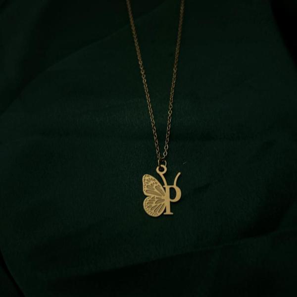 Premium Quality Gold Plated Butterfly Pattern Letter A Necklace personalized pendant chain.