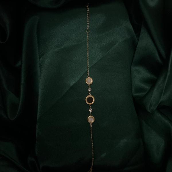 The mix of open and filled circle elements adds depth and visual interest, while the lightweight, adjustable design ensures a comfortable and perfect fit. Ideal for layering or wearing solo, this bracelet brings a refined charm to both casual and occasion wear.