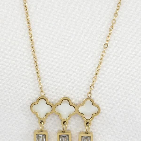 Add a touch of refined elegance to your jewelry collection with this beautifully crafted clover charm pendant necklace. Designed with delicate gold-toned chains, the piece features three iconic clover motifs symbolizing luck and grace, paired with sleek rectangular stone drops that add a modern, sophisticated edge.
